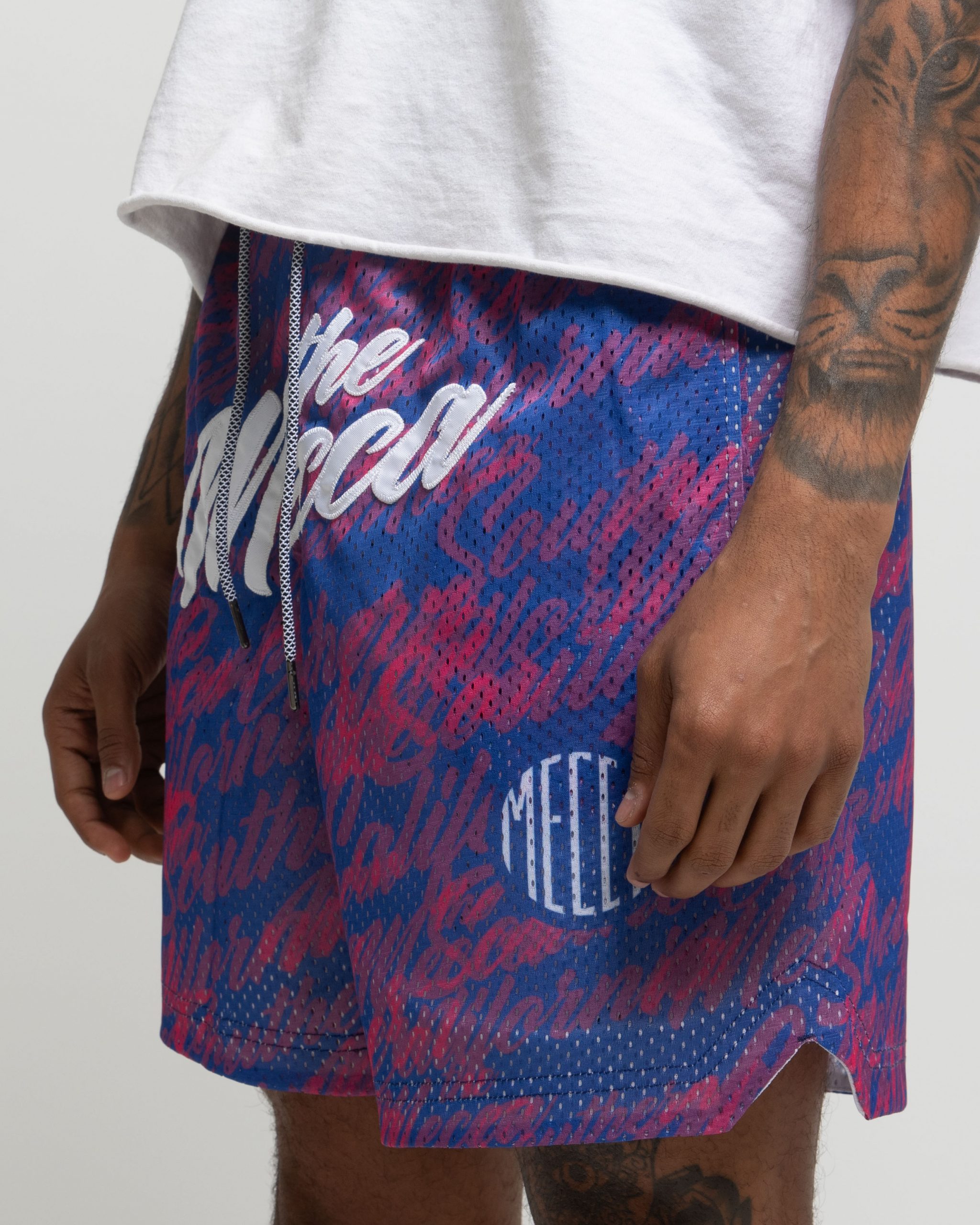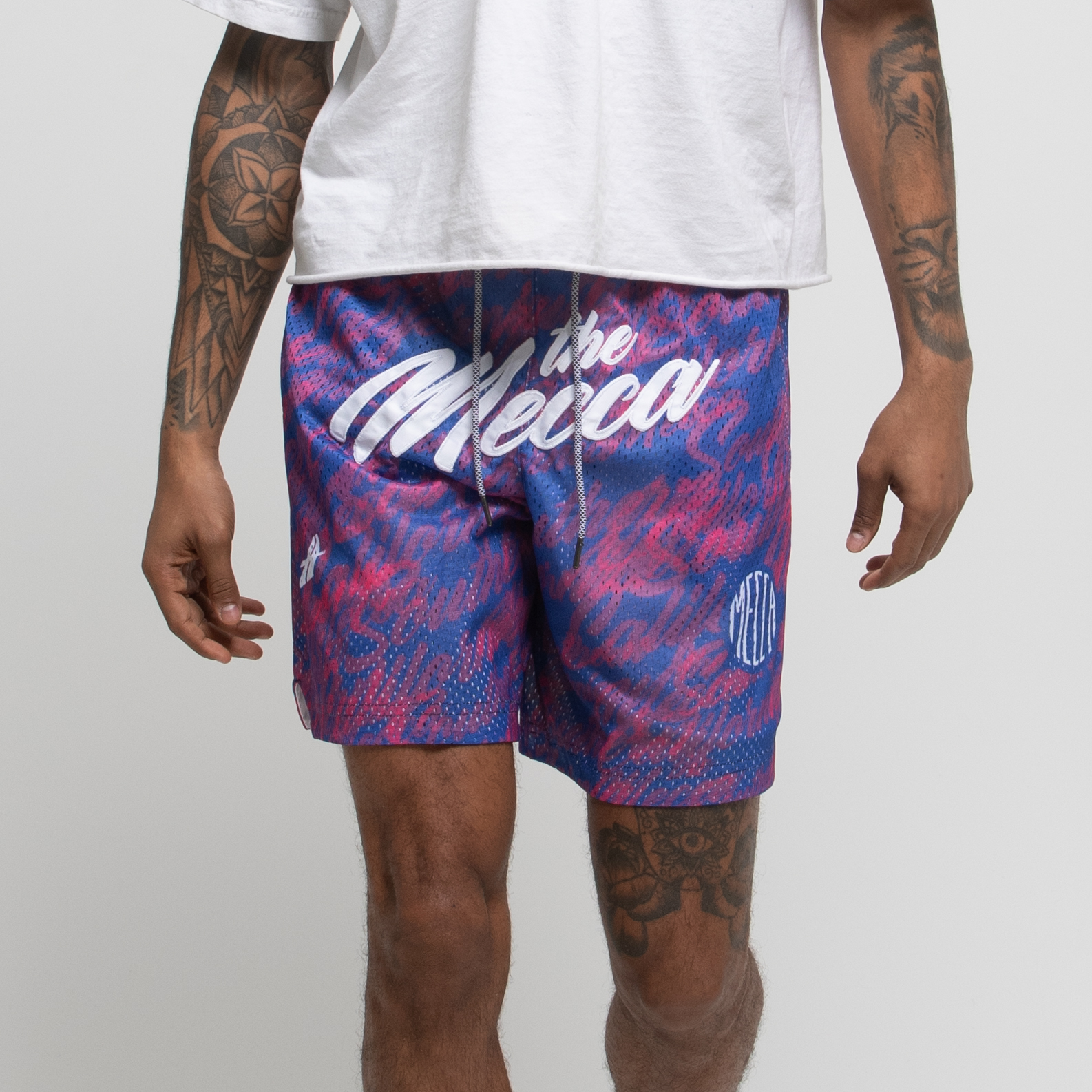 Embroidered ‘the Mecca’ graphic.